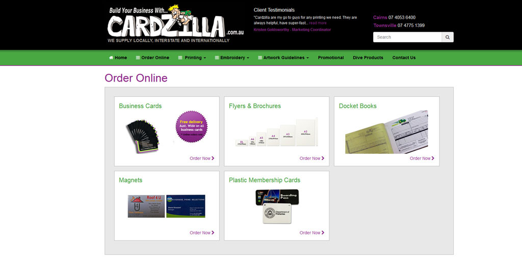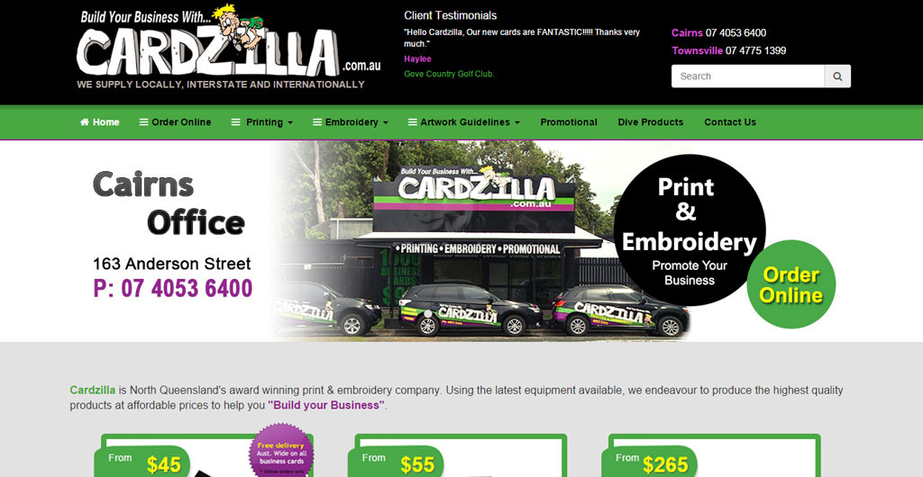 Cardzilla is an award winning printing and embroidery company located in Tropical North Queensland servicing clients Australia wide.