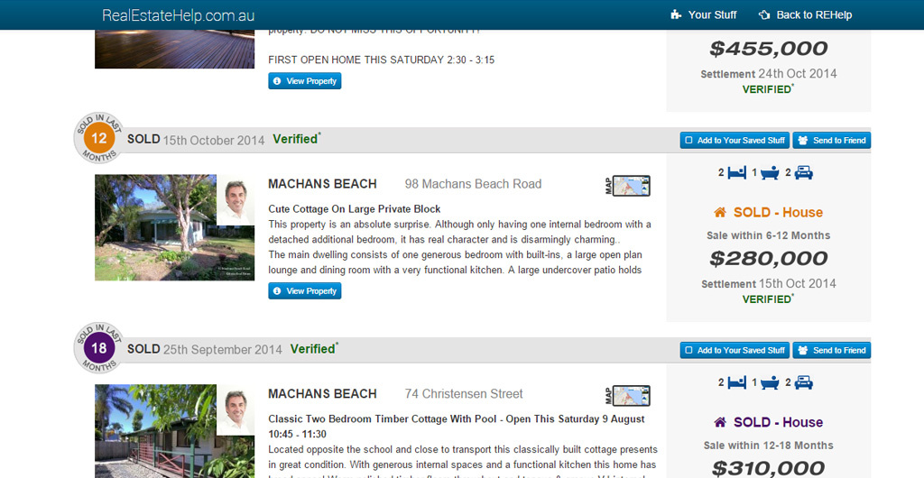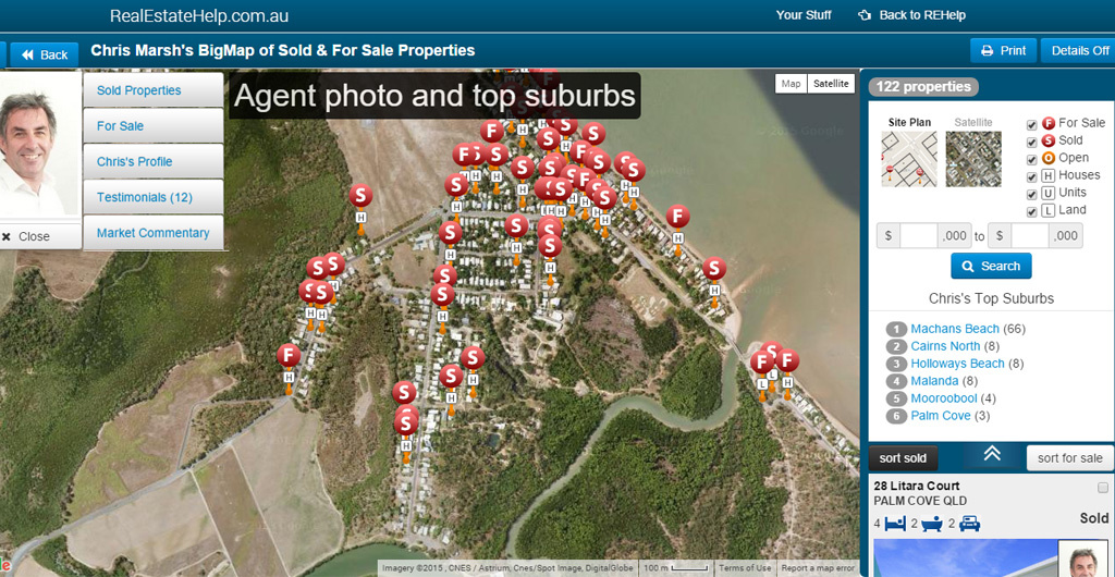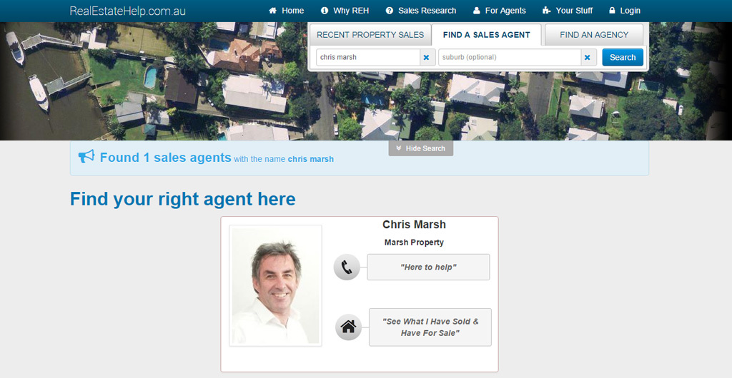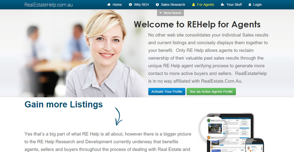RealEstateHelp had a new concept in the way Real Estate agents were presented and profiled. The site focuses heavily on Google Mapping technology to help "visualise" an agent's performance.